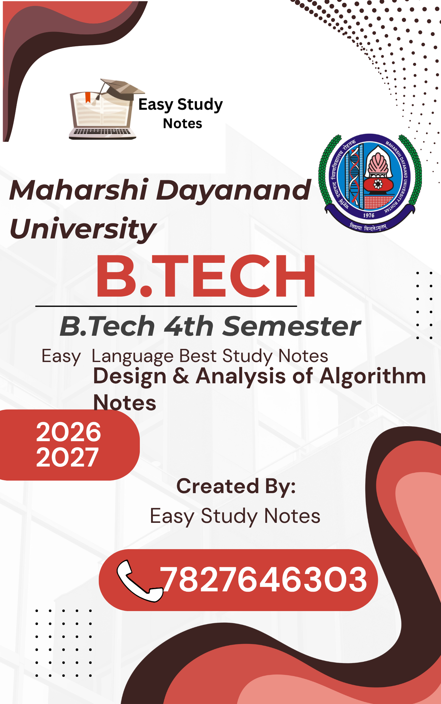 Understanding Design and Analysis of Algorithm Notes (DAA) can be challenging due to complex algorithms, mathematical concepts, and detailed diagrams. To make it easier for students, Easy Study Notes brings you the most complete, clean, and exam-ready Design and Analysis of Algorithm Notes PDF for B.Tech 4th Semester.