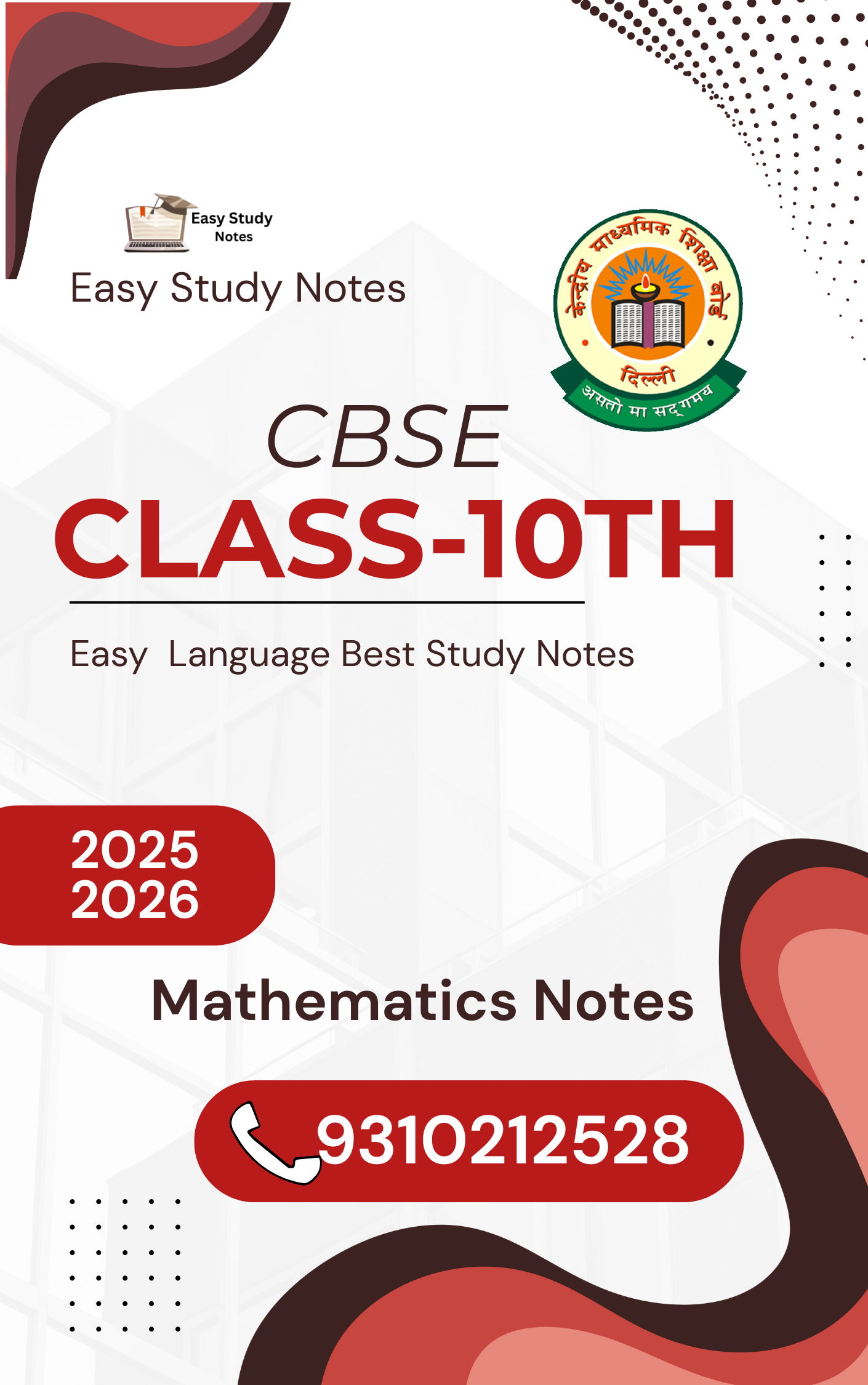 At Easy Study Notes, we aim to make education simple, smart, and accessible for every learner. Our Class-10th Mathematics Notes are written by subject experts, ensuring clarity, accuracy, and exam-oriented learning.