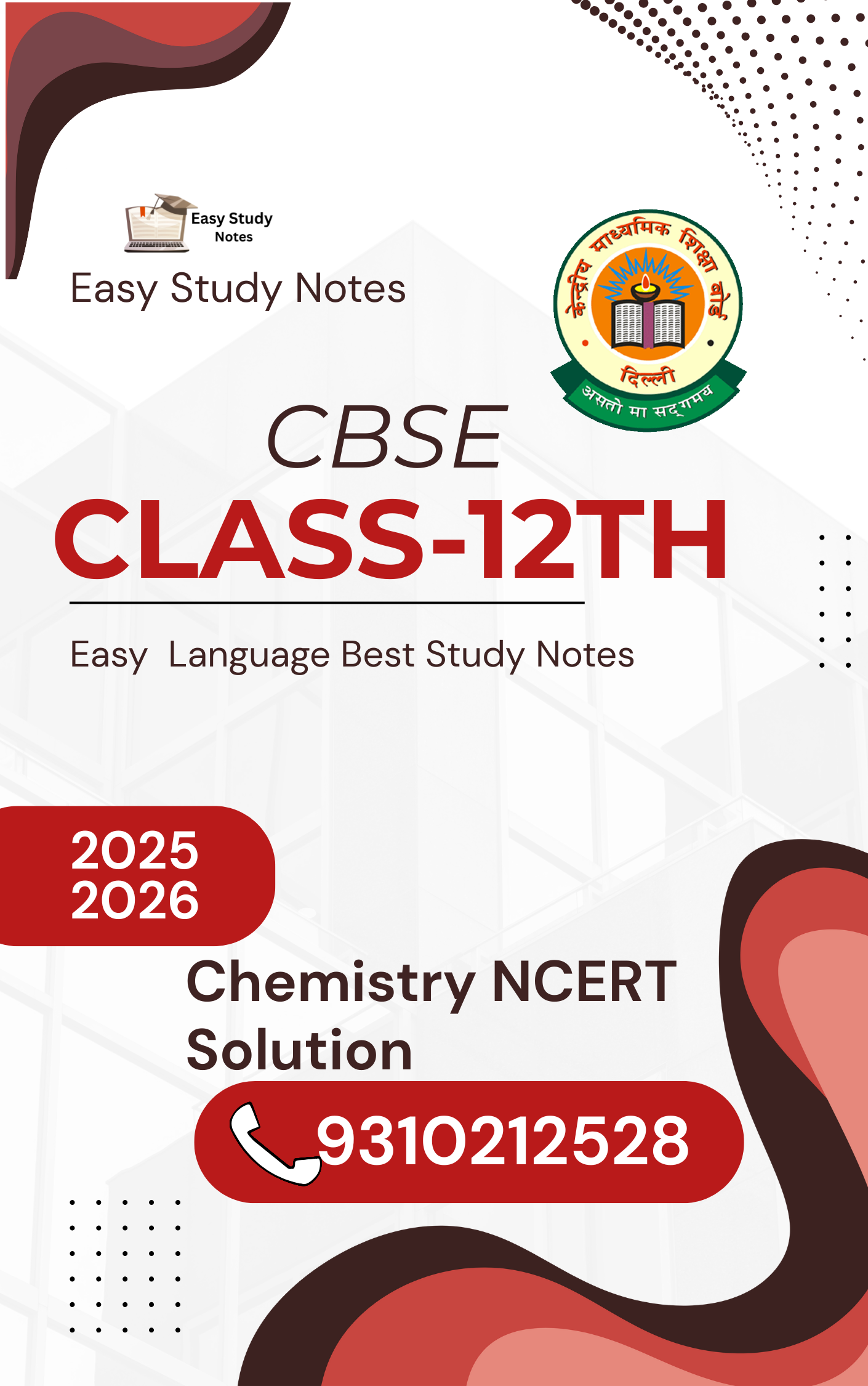 Boost your CBSE exam preparation with Easy Study Notes’ Class-12th Chemistry NCERT Solution, crafted to help students understand, memorize, and revise key concepts faster. These handwritten and chapter-wise organized notes simplify every topic from Solutions,Electrochemistry,Chemical Kinetics,D and F Block Elements,Coordination Compound.Organic Chemistry— making learning easy and effective for every Class 12th student.
