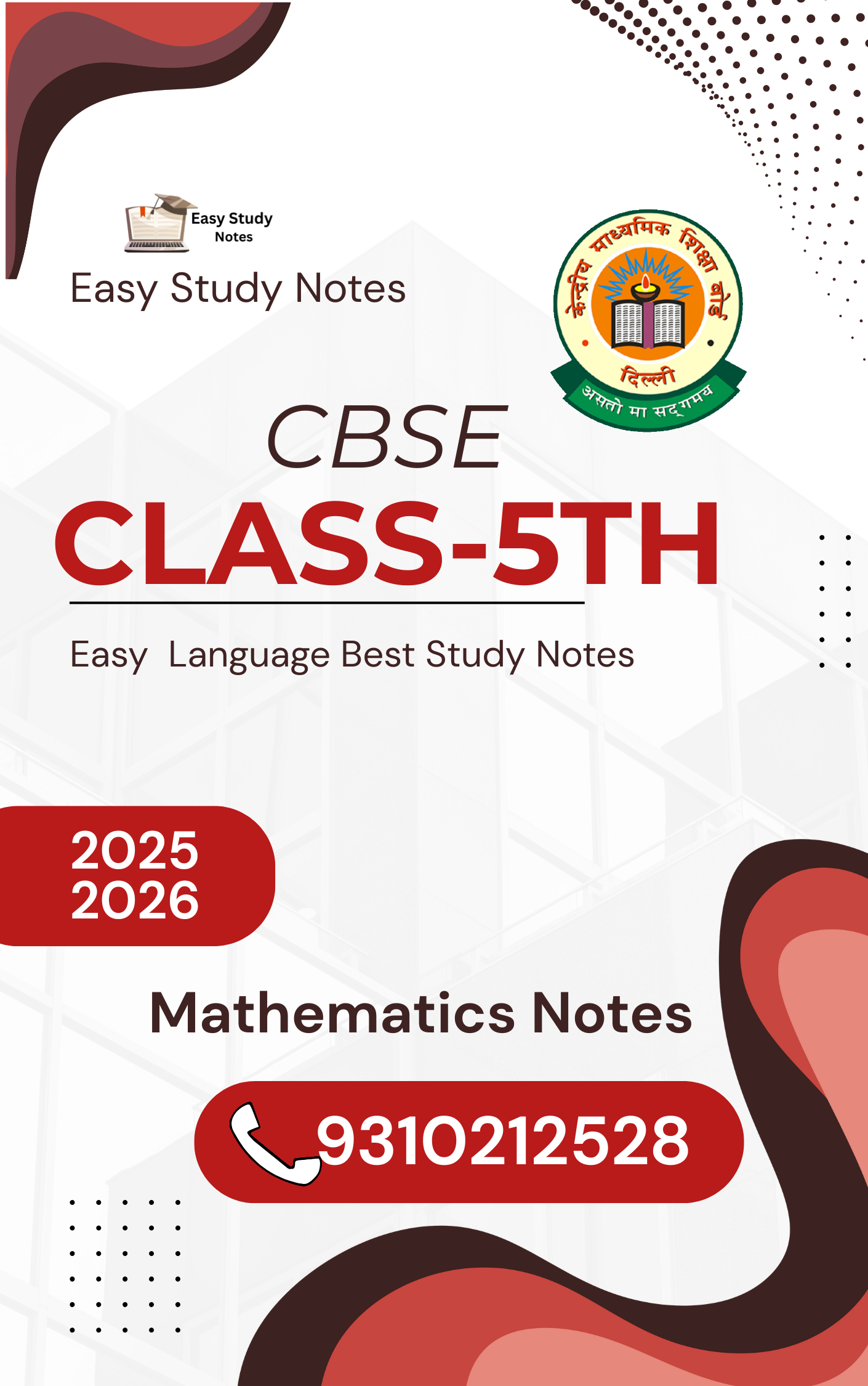Upgrade your preparation with Easy Study Notesβ Class 5th Mathematics Notes, perfectly designed for CBSE students to score higher in exams. These handwritten, easy-to-understand chapter-wise notes help you quickly revise key concepts from Mathematics in one PDF. Explanations, key terms, and important questions, ideal for last-minute revision and board exam readiness.